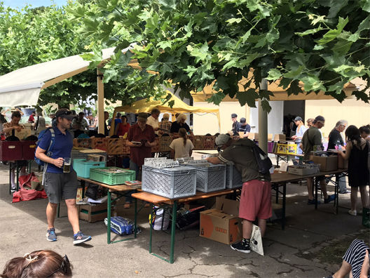 Dazu gibt's kühle Getränke, Salat und Grillspezialitäten (auch vegetarische) von der Ganter Gastronomie.